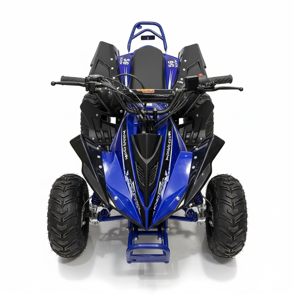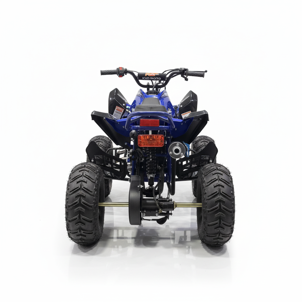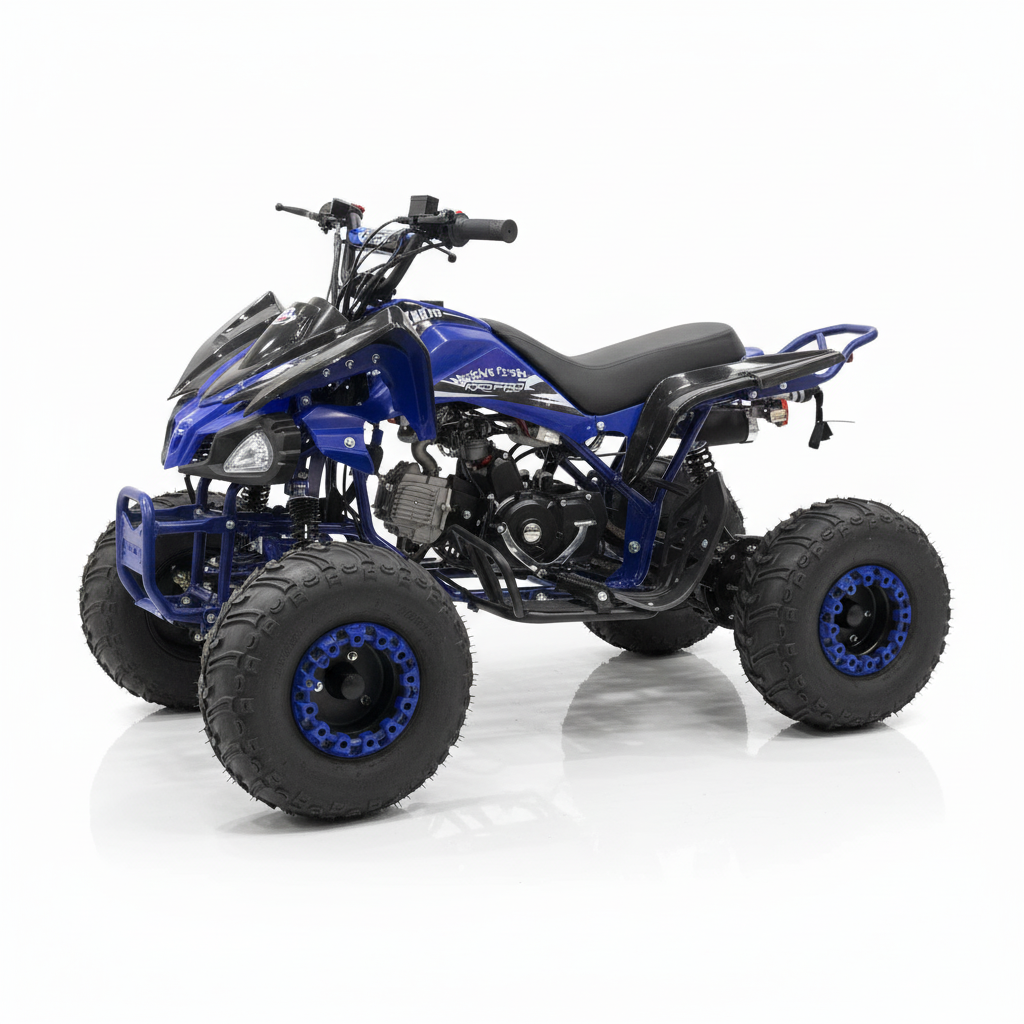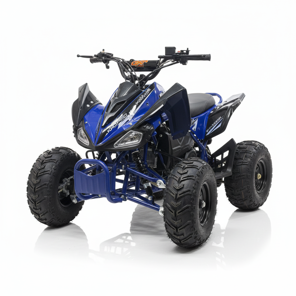 Zu sagen, dass dieses ATV Kids Quad Evolution 125cc Blue leistungsstark ist, ist eine Untertreibung. Der großzügige Hubraum von 125 ccm ist nicht das einzige, was dieses Modell zu einem der leistungsstärksten Kinderquads macht, die derzeit erhältlich sind. Dieses 125-ccm-4-Takt-Kinderquad kombiniert dies mit großzügigen Abmessungen, einem robusten Rahmen und einer großen, hochwirksamen Federung. Kraft geht hier mit Geschwindigkeit einher, denn dieses benzinbetriebene Kinderquad erreicht eine Höchstgeschwindigkeit von 65 km/h. Dank des Geschwindigkeitsbegrenzers können Sie als Eltern die Höchstgeschwindigkeit des Quads selbst bestimmen.