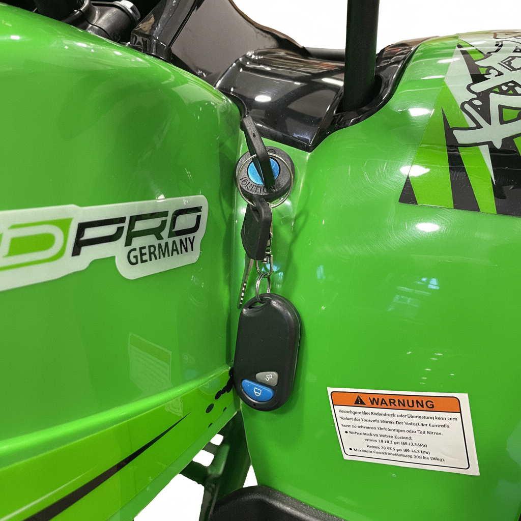 Dank seines robusten Rahmens und der großen, leistungsstarken Federung ist das ATV Kids Quad Extreme Max 125cc Green eines der robustesten Kinderquads auf dem Markt. Das Kinderquad wird mit Benzin betrieben. Dank Front-, Rück- und Bremslicht ist das Quad jederzeit gut sichtbar. Sowohl vorne als auch hinten befindet sich ein Gepäckträger, der sich ideal zum Transportieren von Gegenständen eignet. Bei CarKiddo erhalten Sie die besten Kinderquads zu attraktiven Preisen. Bestellen Sie Ihr Kinderquad jetzt hier.