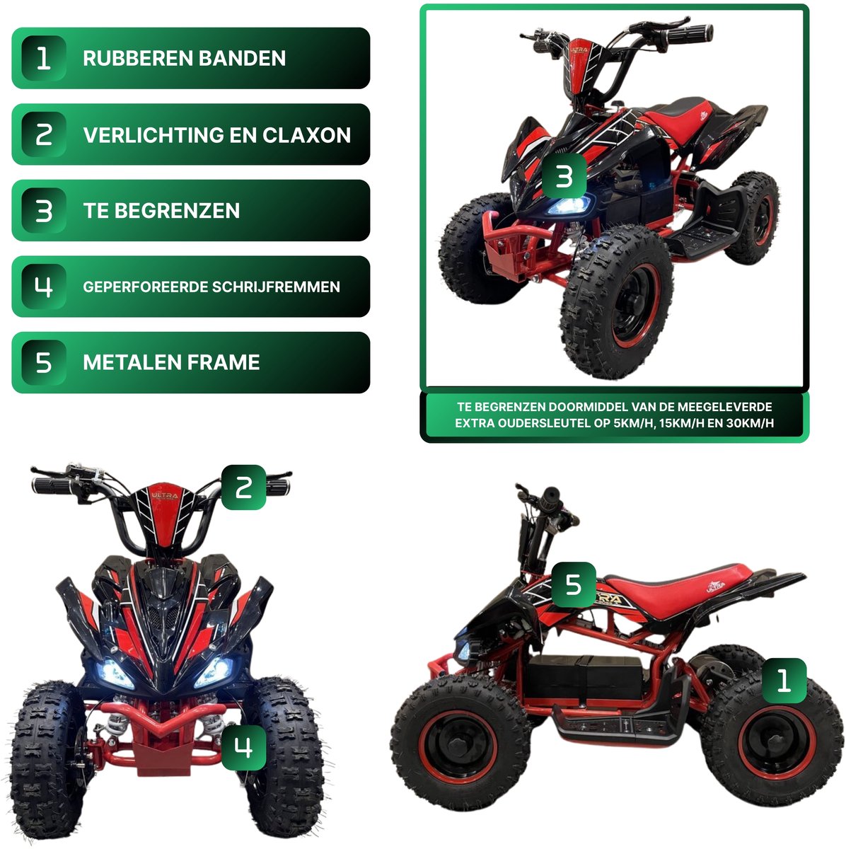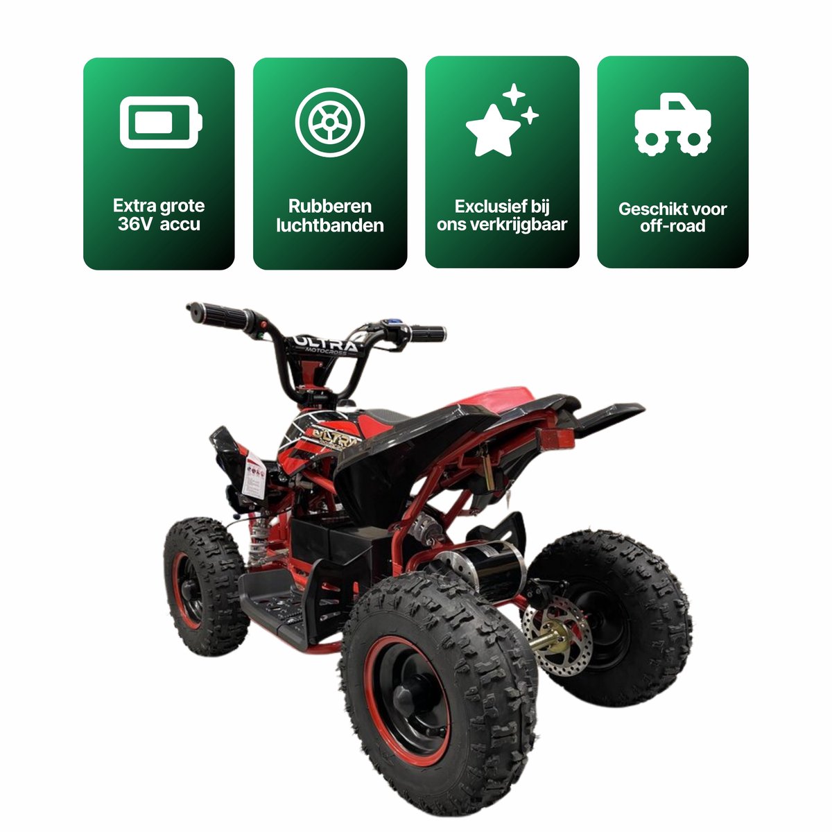 Dieses rote Elektro-Quad für Kinder eignet sich perfekt für Ihr eigenes Grundstück oder die Piste. Wenn Sie beispielsweise ein eigenes Feld haben, macht es Ihrem Sohn oder Ihrer Tochter großen Spaß, mit dem eigenen Quad herumzufahren. So lernt Ihr Kind schon früh den Umgang mit einem Fahrzeug. Und nicht zu vergessen: Das Fahren mit einem Kinder-Quad macht auch unglaublich viel Spaß. Viele Gründe, dieses Elektro-Quad für Kinder in unserem Webshop zu bestellen.