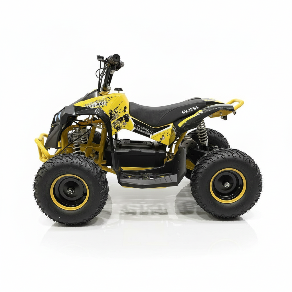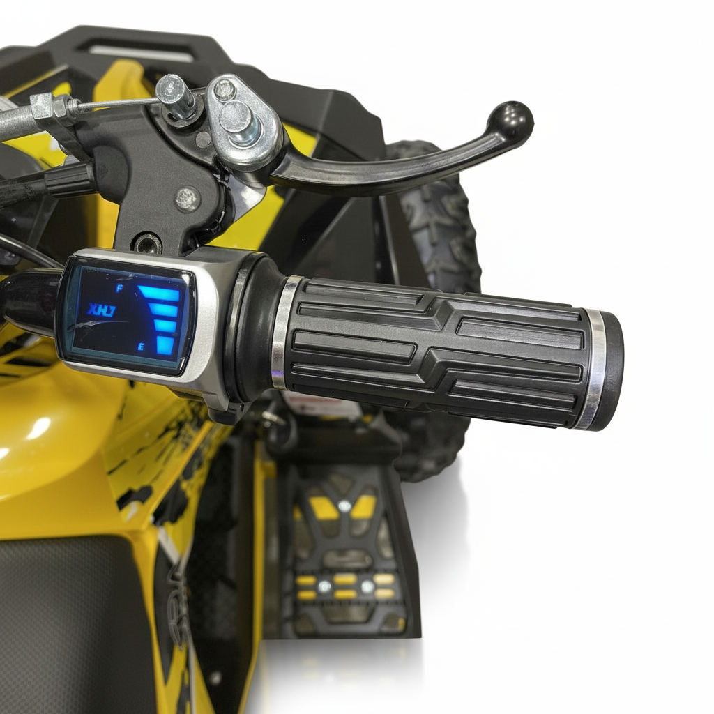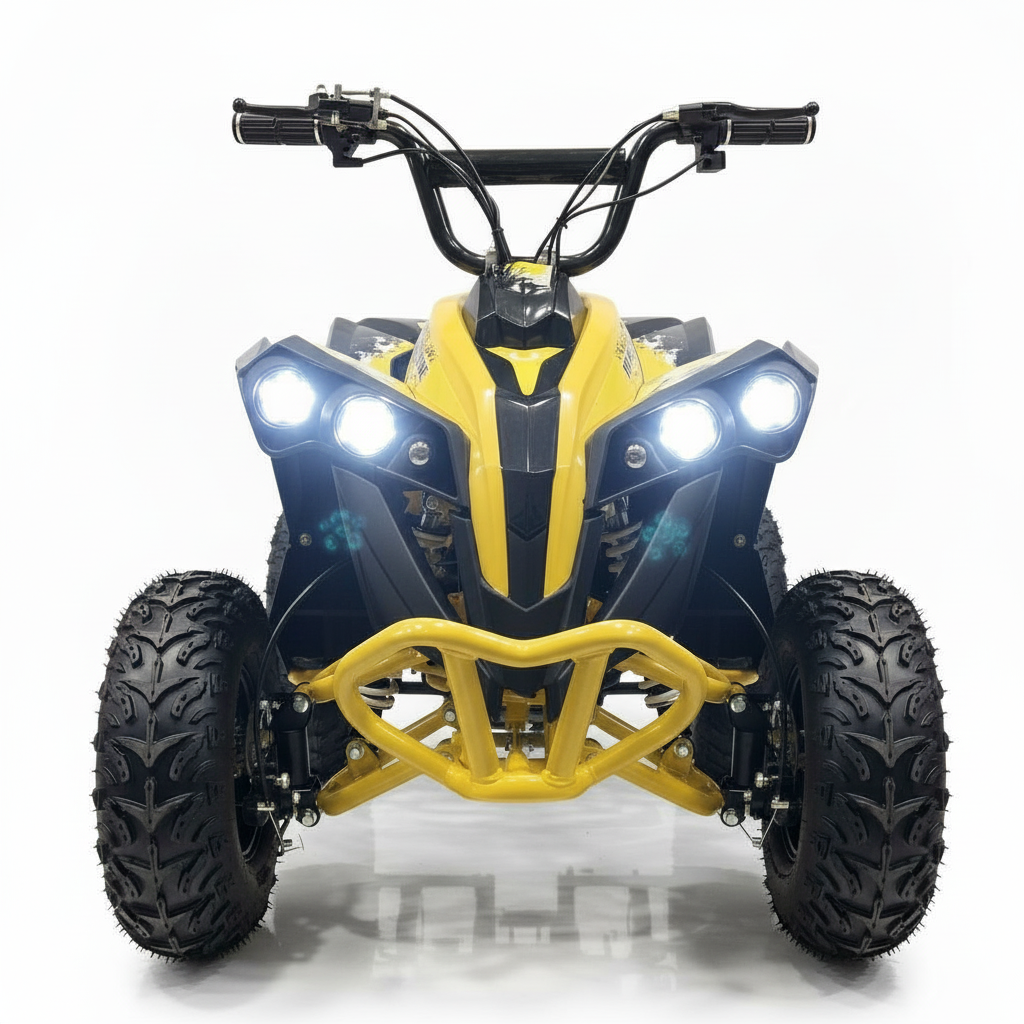 Dieses elektrische Kinderquad ist gelb und sieht einfach phänomenal aus. Die helle LED-Beleuchtung verstärkt den coolen Look zusätzlich. Ein weiterer Vorteil dieser Beleuchtung ist, dass das Quad immer gut sichtbar ist. Das Kinderquad fährt sowohl vorwärts als auch rückwärts und ist daher kinderleicht zu bedienen. Das bürstenlose 1000-Watt-Kinderquad verfügt über eine Neutralstellung. Die Höchstgeschwindigkeit beträgt 30 km/h. Mit dem abnehmbaren Schlüssel können Sie die Höchstgeschwindigkeit auf 5 km/h oder 15 km/h einstellen, sodass Sie als Eltern die Kontrolle behalten.