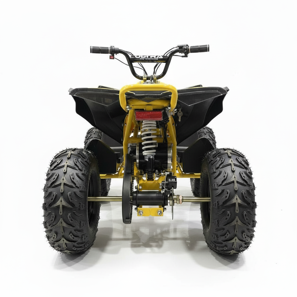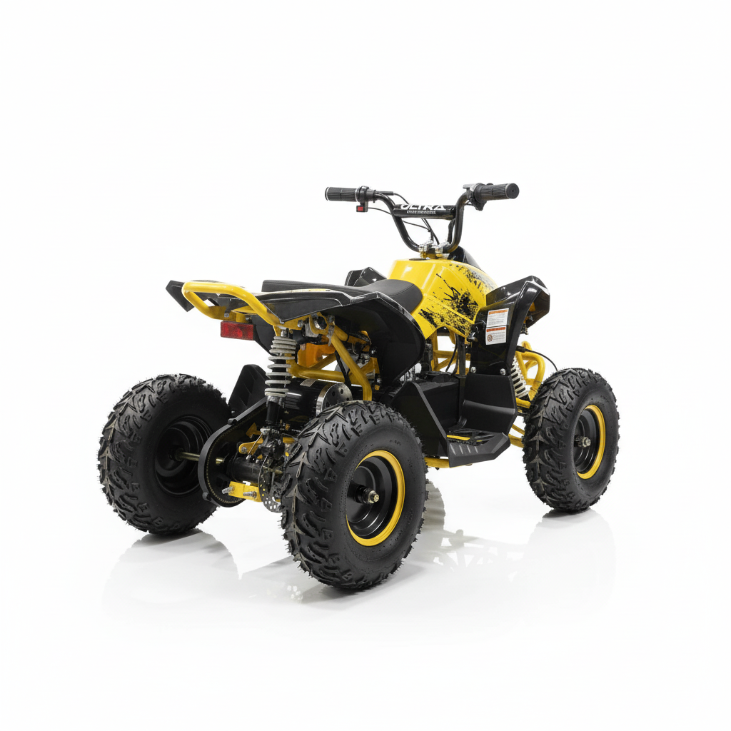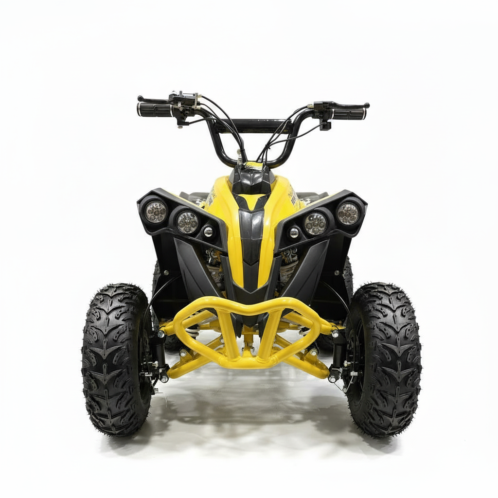 Dieses elektrische Kinderquad ist gelb und sieht einfach phänomenal aus. Die helle LED-Beleuchtung verstärkt den coolen Look zusätzlich. Ein weiterer Vorteil dieser Beleuchtung ist, dass das Quad immer gut sichtbar ist. Das Kinderquad fährt sowohl vorwärts als auch rückwärts und ist daher kinderleicht zu bedienen. Das bürstenlose 1000-Watt-Kinderquad verfügt über eine Neutralstellung. Die Höchstgeschwindigkeit beträgt 30 km/h. Mit dem abnehmbaren Schlüssel können Sie die Höchstgeschwindigkeit auf 5 km/h oder 15 km/h einstellen, sodass Sie als Eltern die Kontrolle behalten.