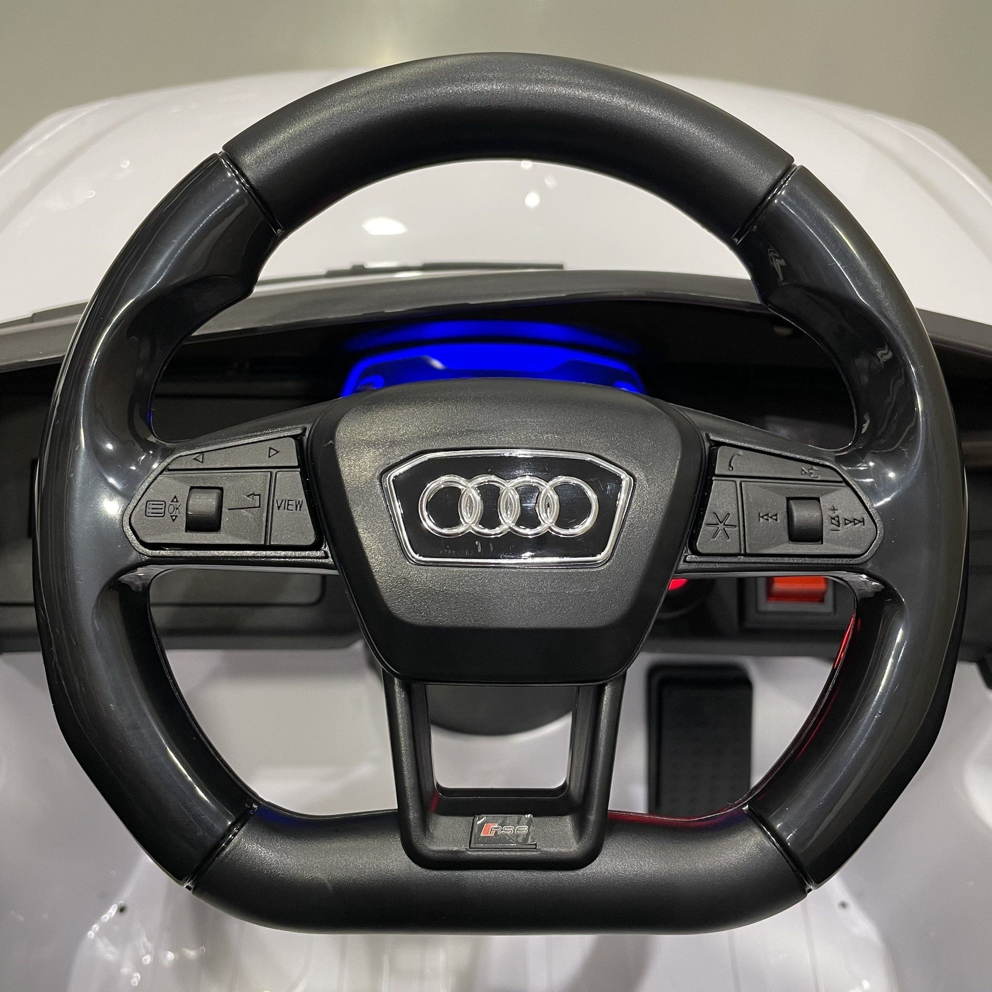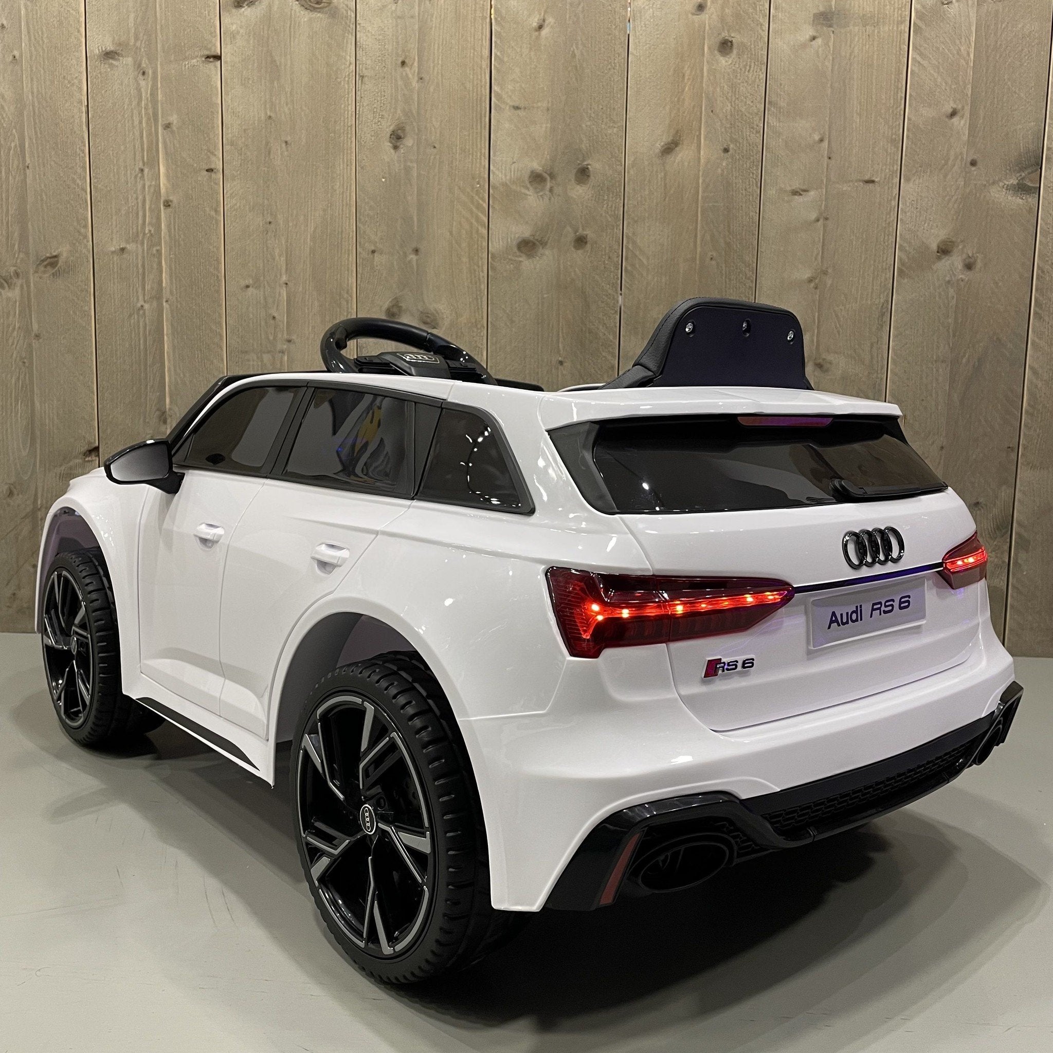 Das offiziell lizenzierte Audi RS6 Kinderauto ist ein wunderschönes Kinderauto. Das elektrische Kinderauto Audi RS6 verfügt über tolle Extras wie authentische LED-Beleuchtung, einen Ledersitz und für besonders komfortable Fahrt Gummireifen und Federung. Die Gummireifen sorgen dafür, dass das Auto auch im Freien auf verschiedenen Untergründen gefahren werden kann.