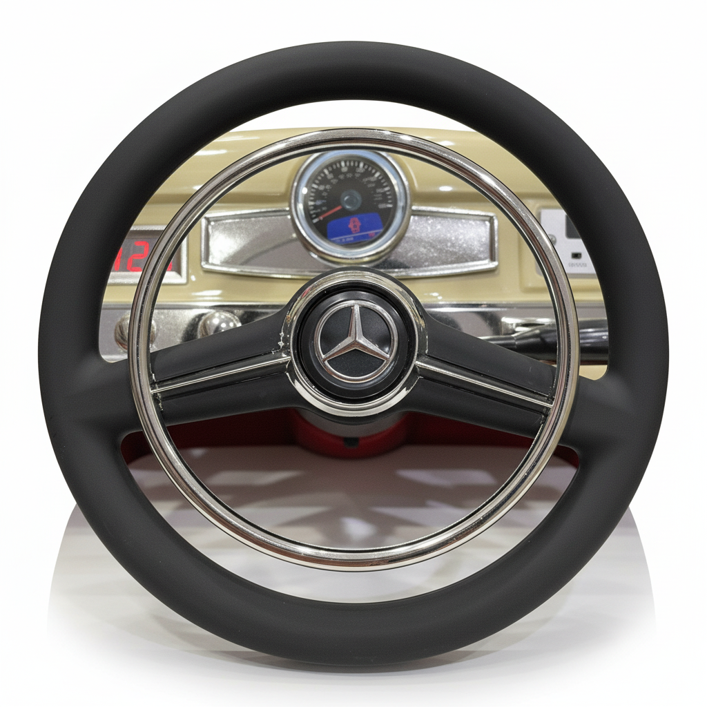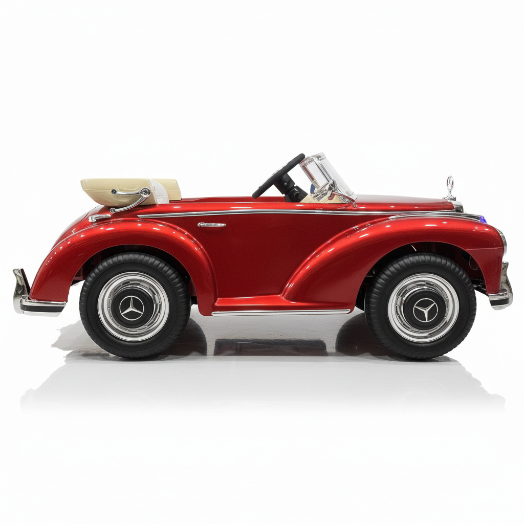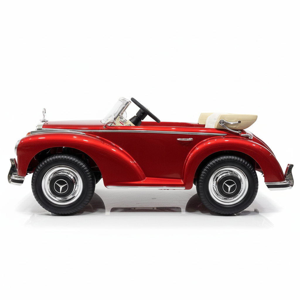 Dieser rote Mercedes-Benz 300S ist eine Elektroversion. Dieses Modell wird nicht mit Benzin betrieben, sondern ist mit einer 12-V-Batterie mit einer Leistung von 70 W ausgestattet. Die 12-V-Batterie verleiht diesem Kinderauto eine beachtliche Leistung. Dadurch ist es wendiger und kann auf verschiedenen Untergründen besser fahren. Selbst unebene Oberflächen wie Sand sind für diesen Oldtimer kein Problem. Ihr Kind kann fahren, wohin es will. Darüber hinaus wird die Batterie schnell aufgeladen, sodass Ihr Kind nie lange ohne dieses Elektro-Kinderauto auskommen muss. Ein weiterer Vorteil ist, dass dieses Modell besser für Mensch und Umwelt ist.