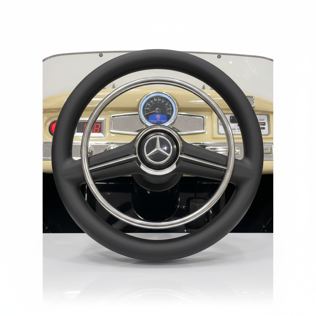 Wenn Sie einen klassischen Mercedes-Benz für Ihr Kind suchen, ist dieses Mercedes 300S Kinderauto genau das Richtige für Sie. Dieses Modell ist offiziell von Mercedes-Benz lizenziert, was sich im Design dieses klassischen Mercedes-Kinderautos widerspiegelt. Dieses Modell strahlt pure Klasse aus. Dieser Oldtimer kam ursprünglich 1951 auf den Markt und strahlt puren Luxus aus. Jetzt ist dieses Modell auch für Kinder erhältlich. Das Auto hat einen besonderen Clou: Es ist elektrisch. Das ist besser für Ihr Kind und die Umwelt. Die 12-V-Batterie verleiht diesem Mercedes 300S viel Leistung.