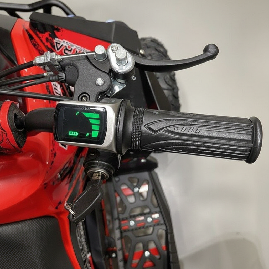 Die digitale Batterieanzeige zeigt Ihnen auf einen Blick, wann dieses elektrische Kinderquad aufgeladen werden muss. Dank seiner Geschwindigkeitsflexibilität, des attraktiven Designs und der robusten Bauweise ist dieses Kinderquad eine hervorragende Wahl für jedes Kind. Junge Geschwindigkeitsfanatiker werden mit diesem Quad viel Spaß haben. Darüber hinaus schont ein elektrisches Kinderquad Mensch und Umwelt. Bestellen Sie Ihr elektrisches Kinderquad bei CarKiddo und profitieren Sie von attraktiven Preisen und günstigen Kundenkonditionen.