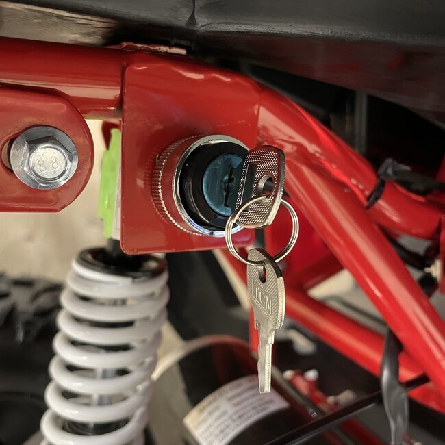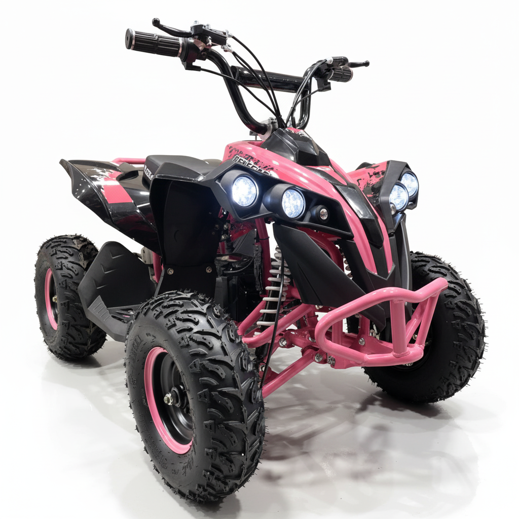 Dieses elektrische Kinderquad ist pink und sieht phänomenal aus. Die helle LED-Beleuchtung verstärkt den coolen Look zusätzlich. Ein weiterer Vorteil dieser Beleuchtung ist, dass das Quad immer gut sichtbar ist. Das Kinderquad fährt sowohl vorwärts als auch rückwärts und ist daher kinderleicht zu bedienen. Das bürstenlose 1000-Watt-Kinderquad verfügt über eine Neutralstellung. Die Höchstgeschwindigkeit beträgt 30 km/h. Mit dem abnehmbaren Schlüssel können Sie die Höchstgeschwindigkeit auf 5 km/h oder 15 km/h einstellen, sodass Sie als Eltern die Kontrolle behalten.