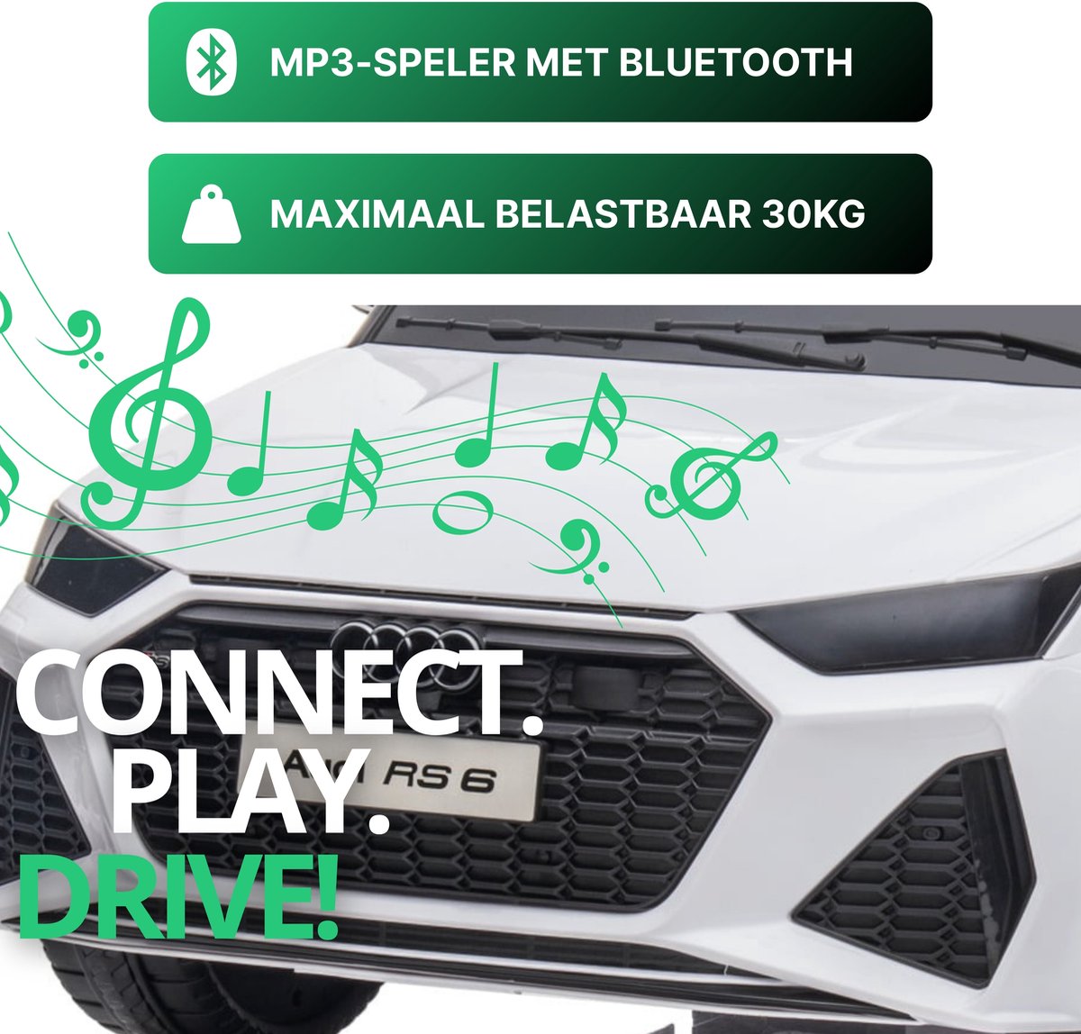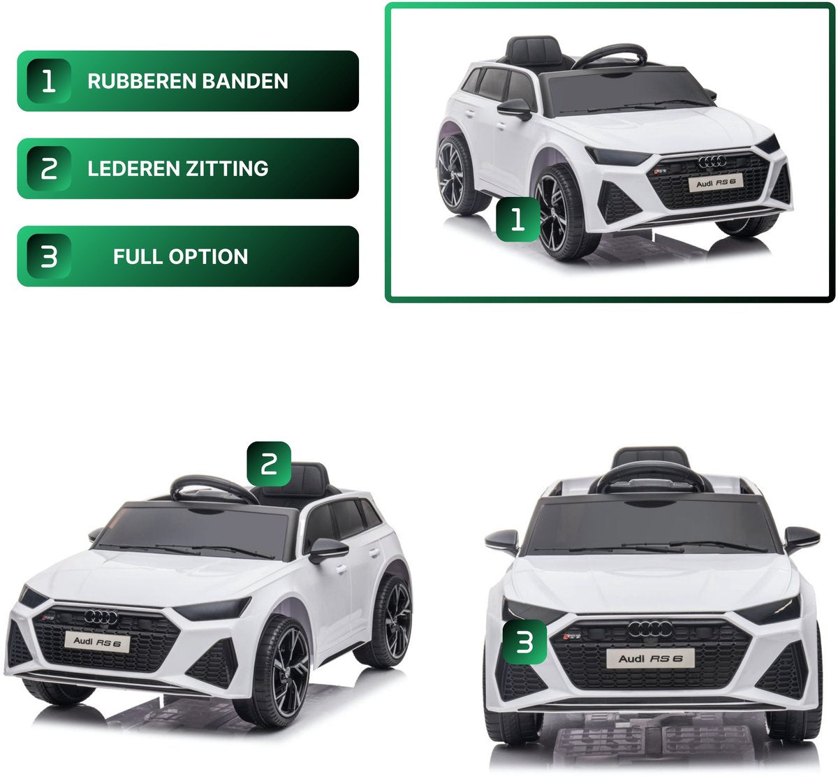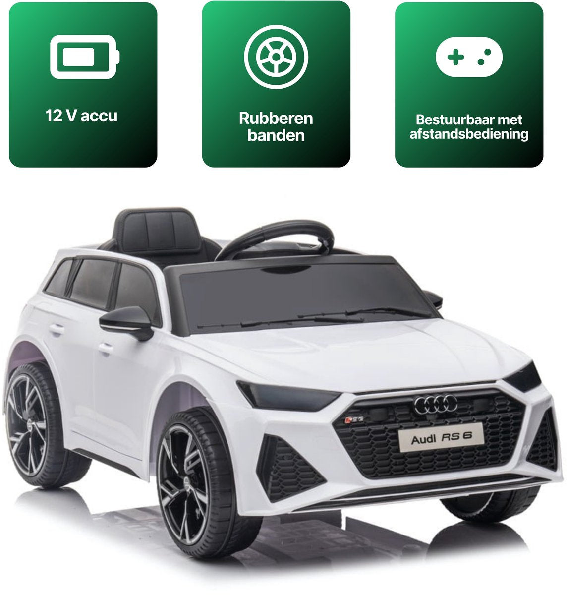 Das offiziell lizenzierte Audi RS6 Kinderauto ist ein wunderschönes Kinderauto. Das elektrische Kinderauto Audi RS6 verfügt über tolle Extras wie authentische LED-Beleuchtung, einen Ledersitz und für besonders komfortable Fahrt Gummireifen und Federung. Die Gummireifen sorgen dafür, dass das Auto auch im Freien auf verschiedenen Untergründen gefahren werden kann.