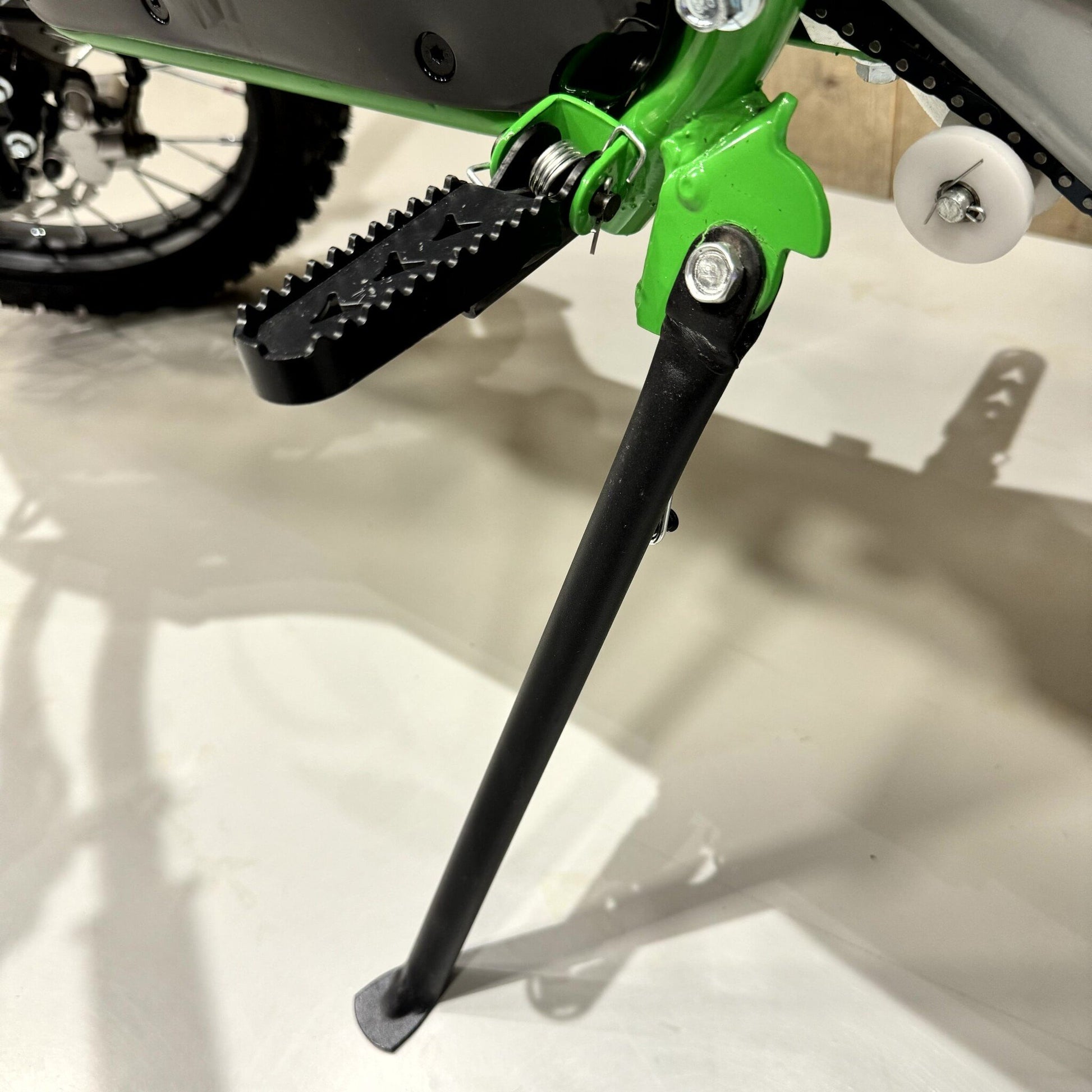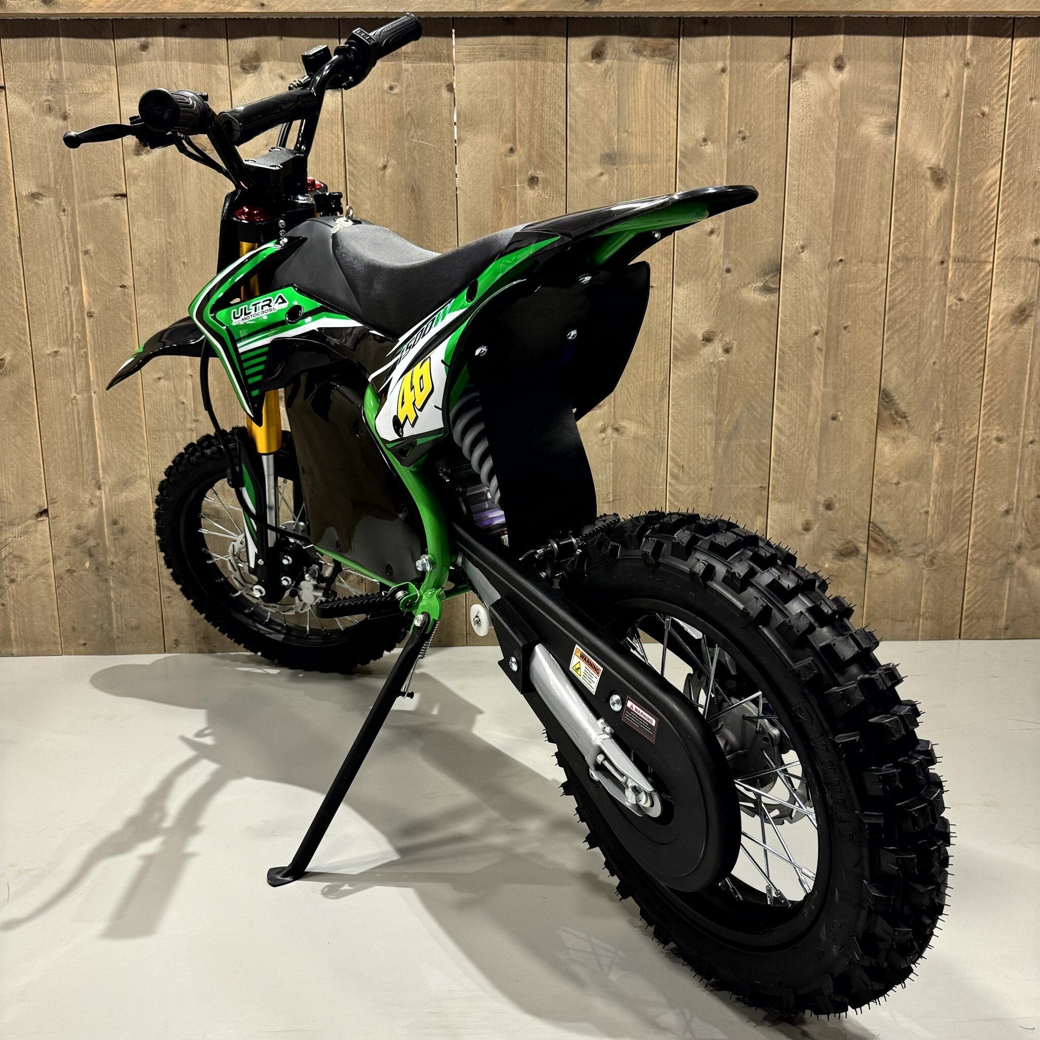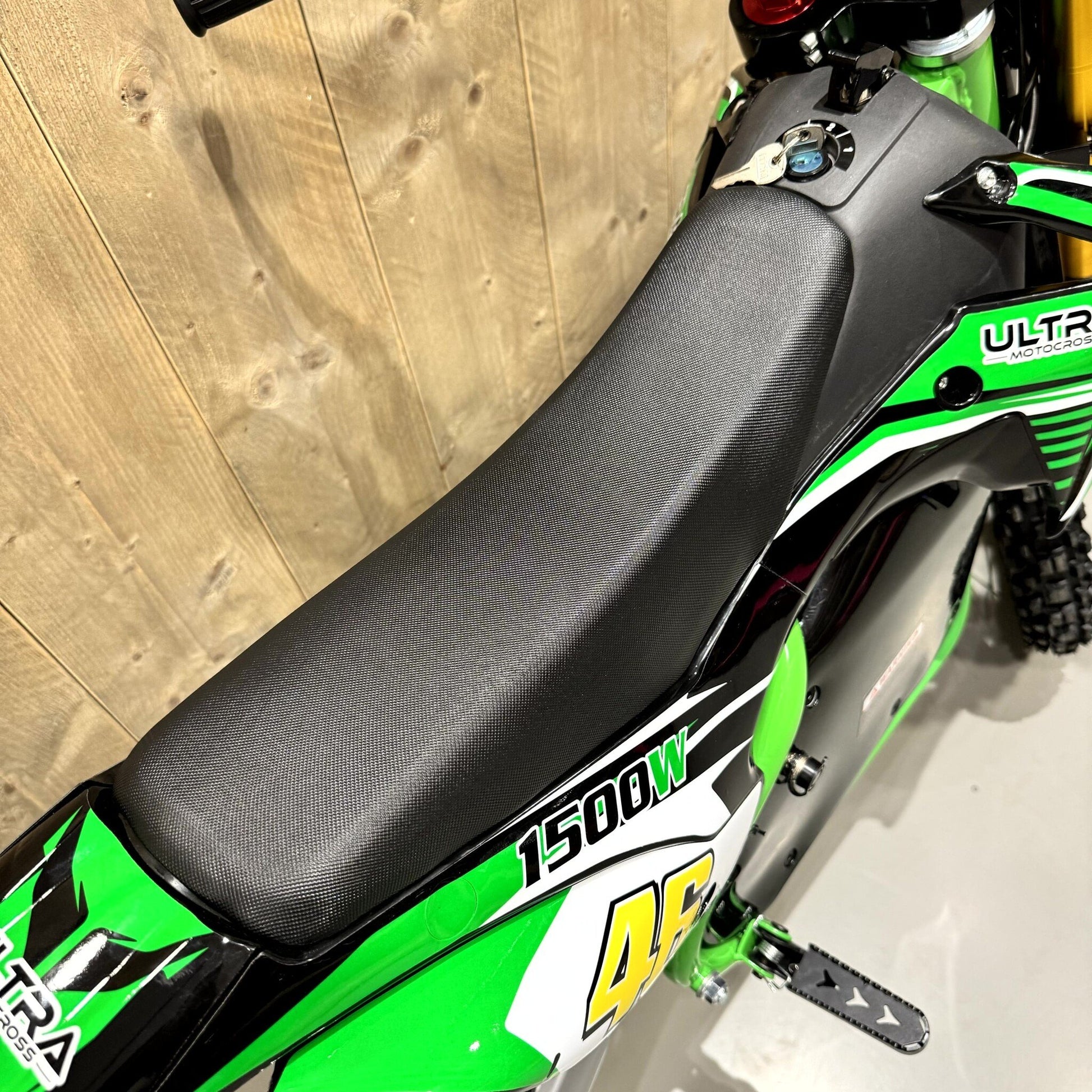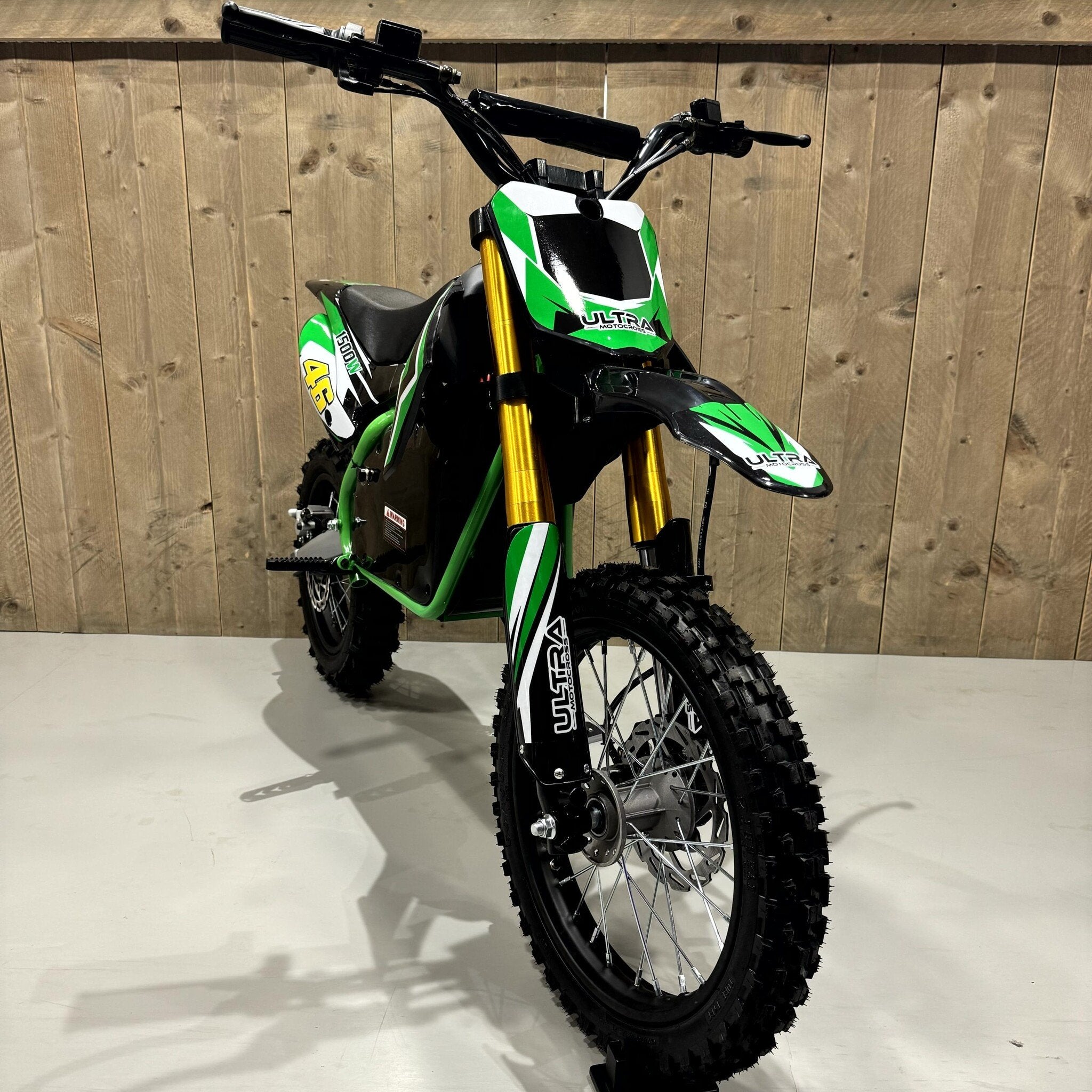 Mit seiner auffälligen grünen Farbe wird niemand Ihr Kind übersehen, wenn es dieses 1500-W-Elektro-Motocross-Bike für Kinder fährt. Mit 1500 Watt Leistung ist dies das leistungsstärkste Elektro-Motocross-Bike in unserem umfangreichen Sortiment. Es ist außerdem ein mittelgroßes Bike. Dieses Modell ist für Kinder von 6 bis 14 Jahren geeignet. Da es sich um ein Motorrad mit Automatikschaltung handelt, muss nicht geschaltet werden, sodass Motocross für jedes Kind zugänglich ist. Neugierig auf die Möglichkeiten dieser Elektro-Kinderbikes? Dann lesen Sie weiter. Suchen Sie ein kleineres Modell? Dann wählen Sie dieses 1000-W-Elektro-Motocross-Bike für Kinder in Blau .