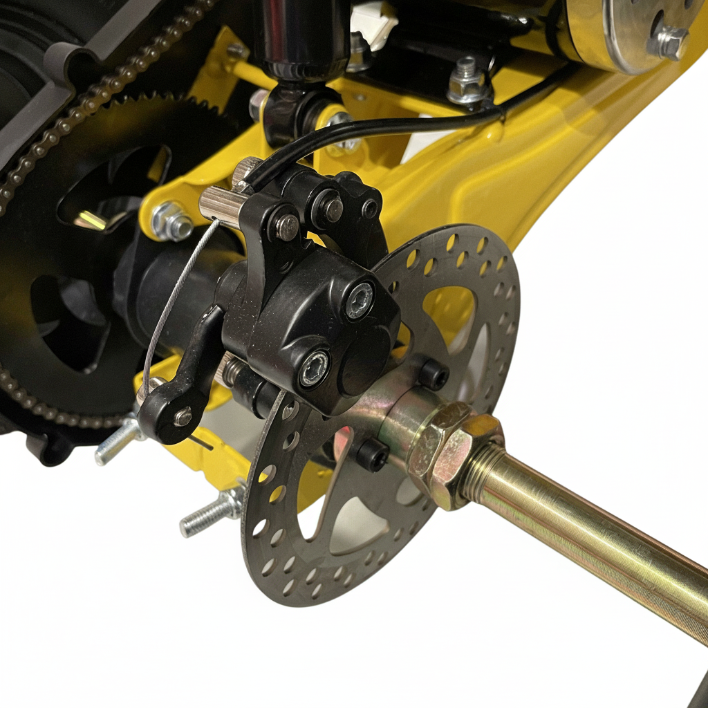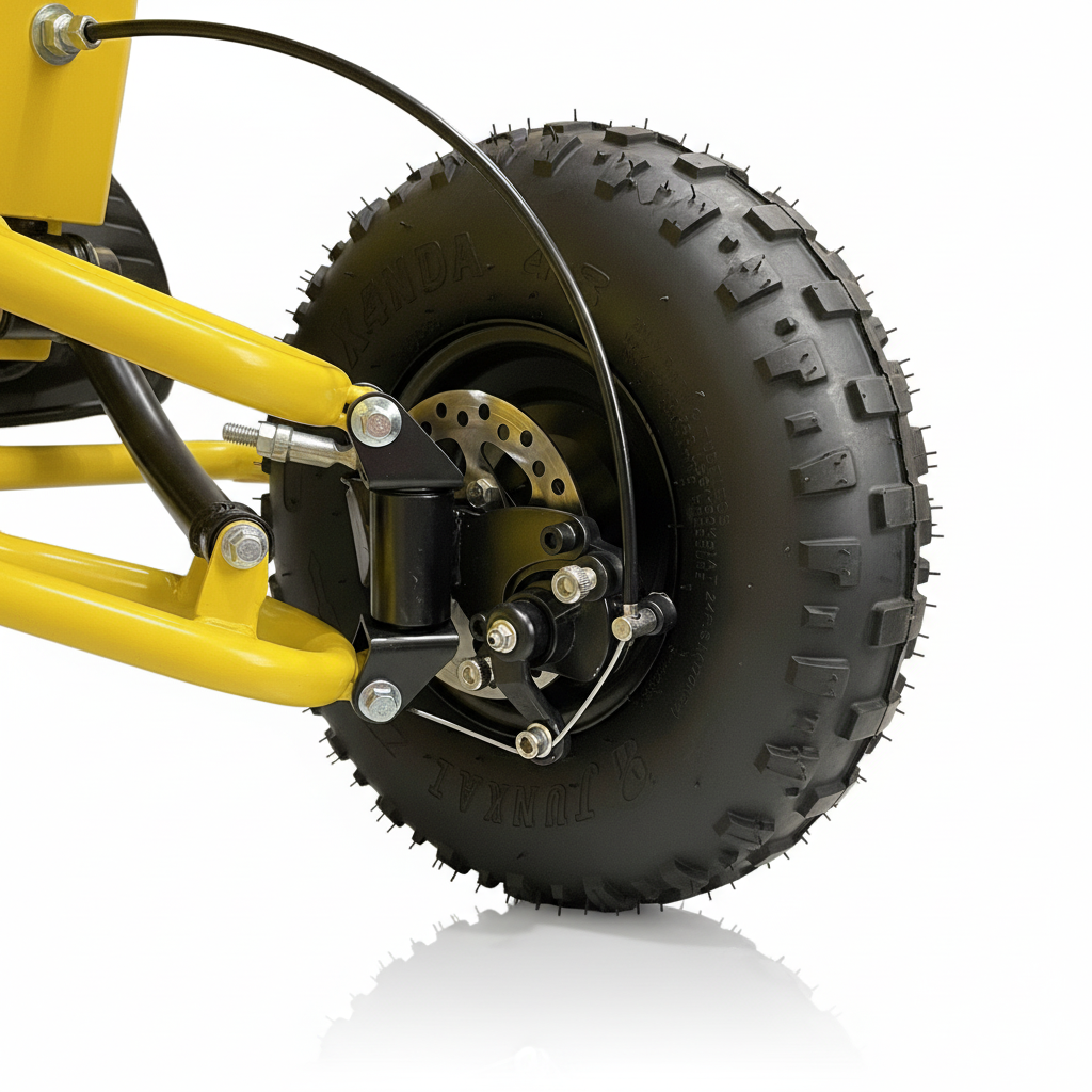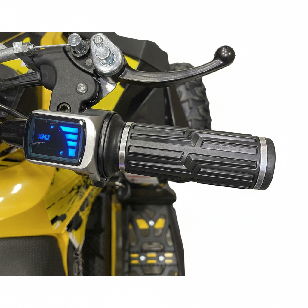 Dieses elektrische Kinderquad ist gelb und sieht einfach phänomenal aus. Die helle LED-Beleuchtung verstärkt den coolen Look zusätzlich. Ein weiterer Vorteil dieser Beleuchtung ist, dass das Quad immer gut sichtbar ist. Das Kinderquad fährt sowohl vorwärts als auch rückwärts und ist daher kinderleicht zu bedienen. Das bürstenlose 1000-Watt-Kinderquad verfügt über eine Neutralstellung. Die Höchstgeschwindigkeit beträgt 30 km/h. Mit dem abnehmbaren Schlüssel können Sie die Höchstgeschwindigkeit auf 5 km/h oder 15 km/h einstellen, sodass Sie als Eltern die Kontrolle behalten.