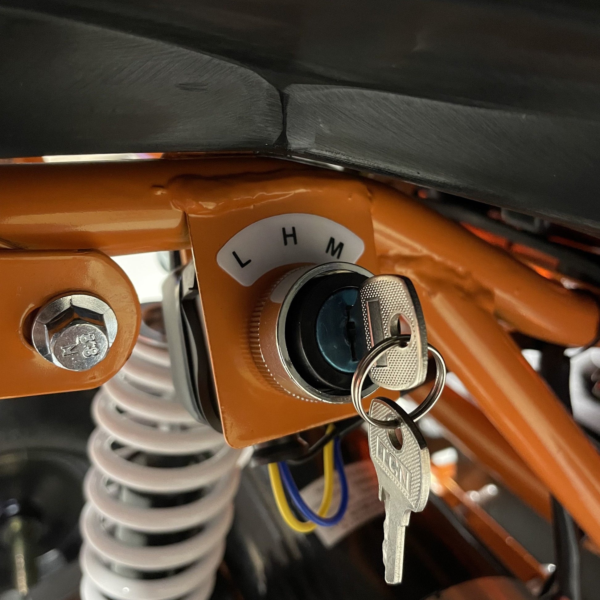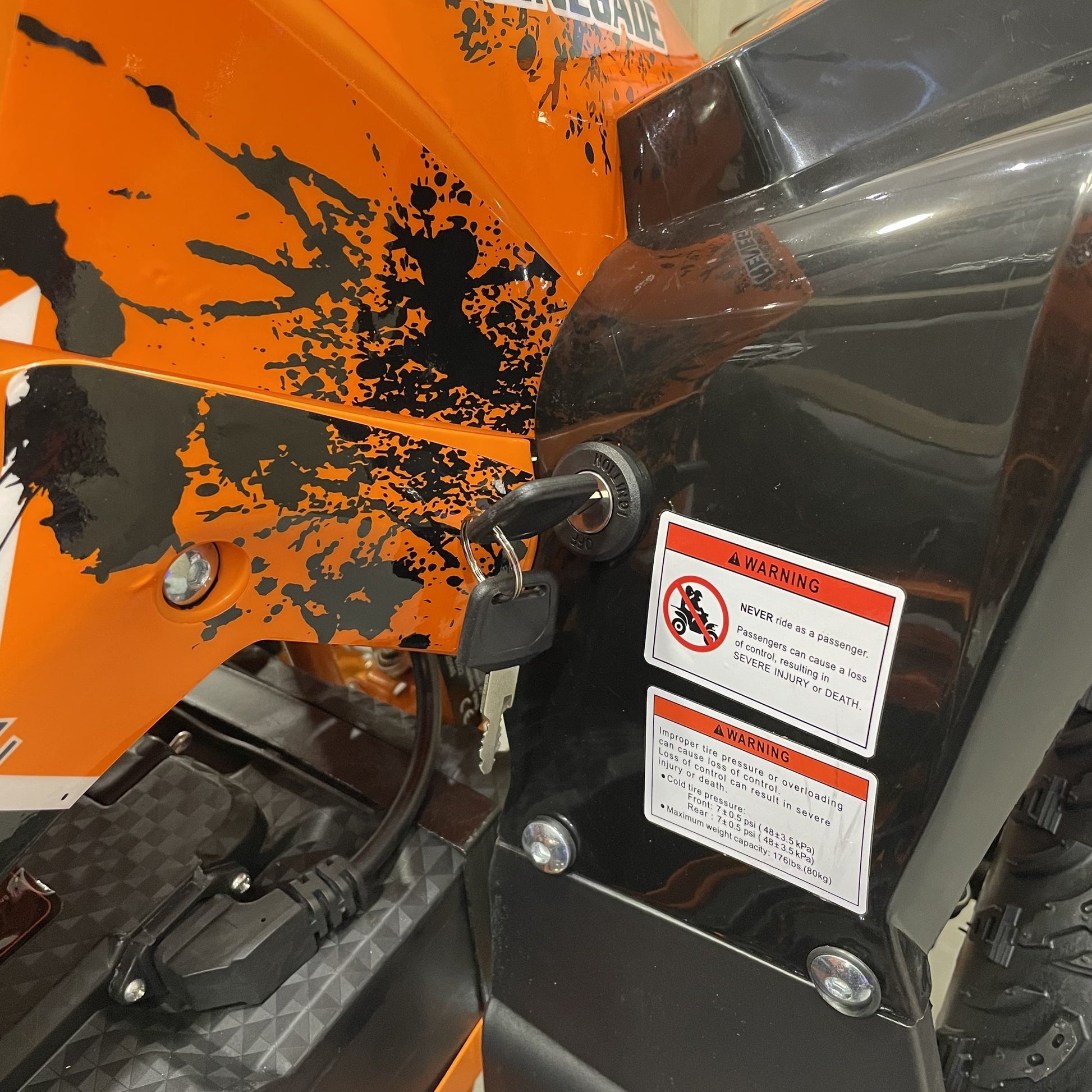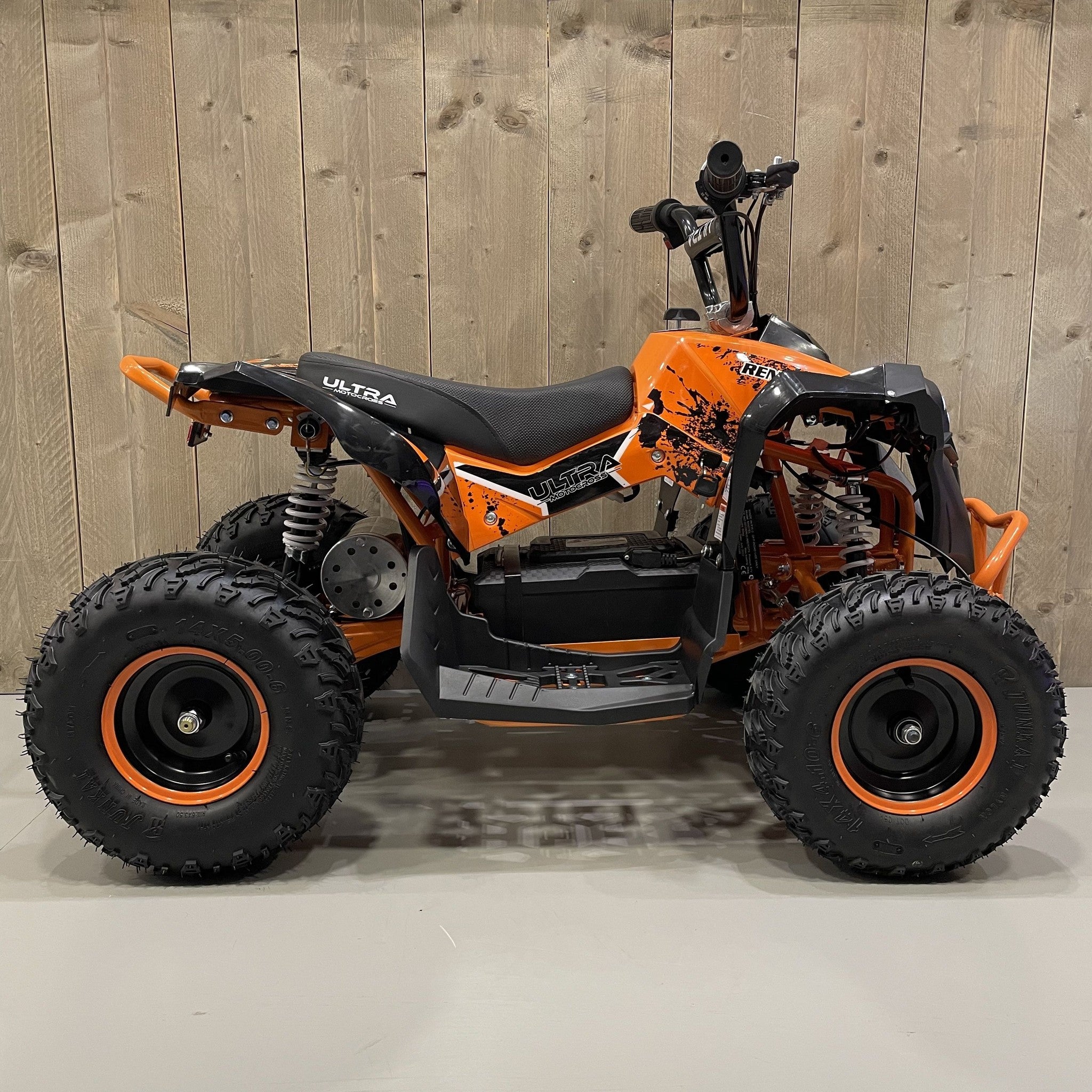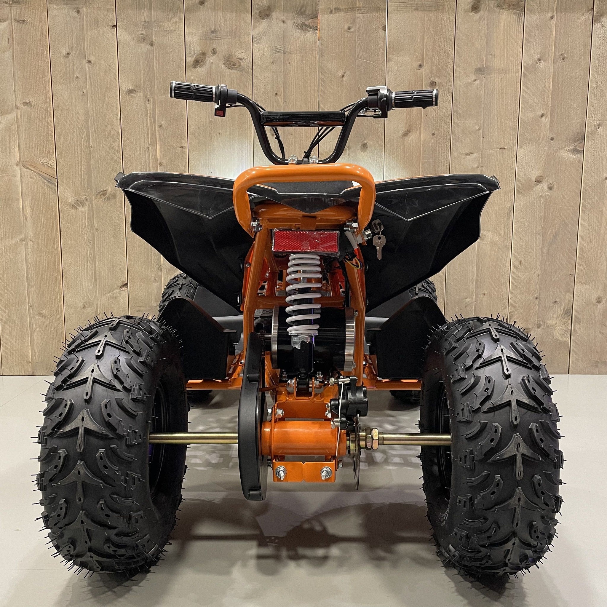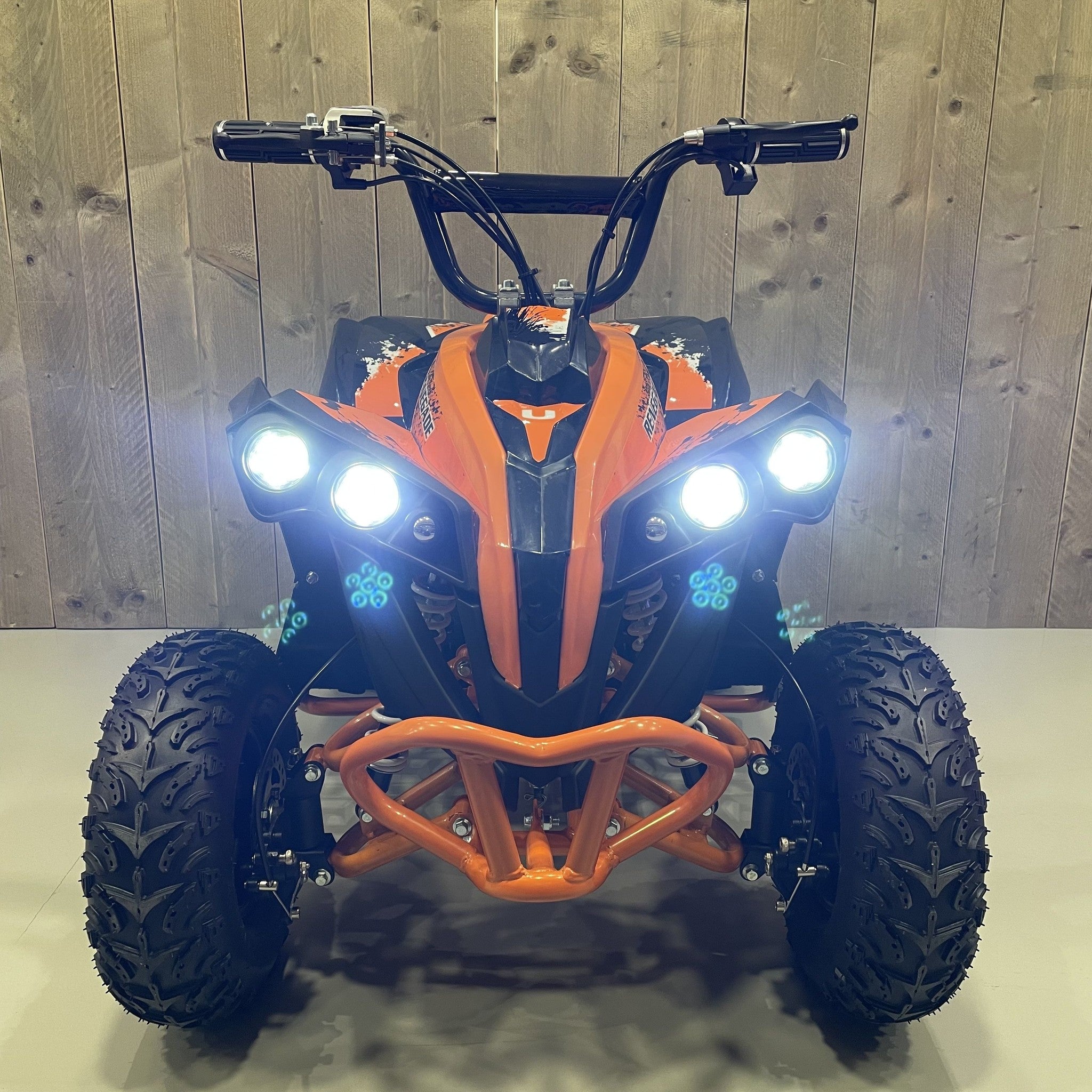 Dieses elektrische Kinderquad ist orange und sieht phänomenal aus. Die helle LED-Beleuchtung verstärkt den coolen Look zusätzlich. Ein weiterer Vorteil dieser Beleuchtung ist, dass das Quad immer gut sichtbar ist. Das Kinderquad fährt sowohl vorwärts als auch rückwärts und ist daher kinderleicht zu bedienen. Das bürstenlose 1000-Watt-Kinderquad verfügt über eine Neutralstellung. Die Höchstgeschwindigkeit beträgt 30 km/h. Mit dem abziehbaren Schlüssel können Sie die Höchstgeschwindigkeit auf 5 km/h oder 15 km/h einstellen, sodass Sie als Eltern die Kontrolle behalten.