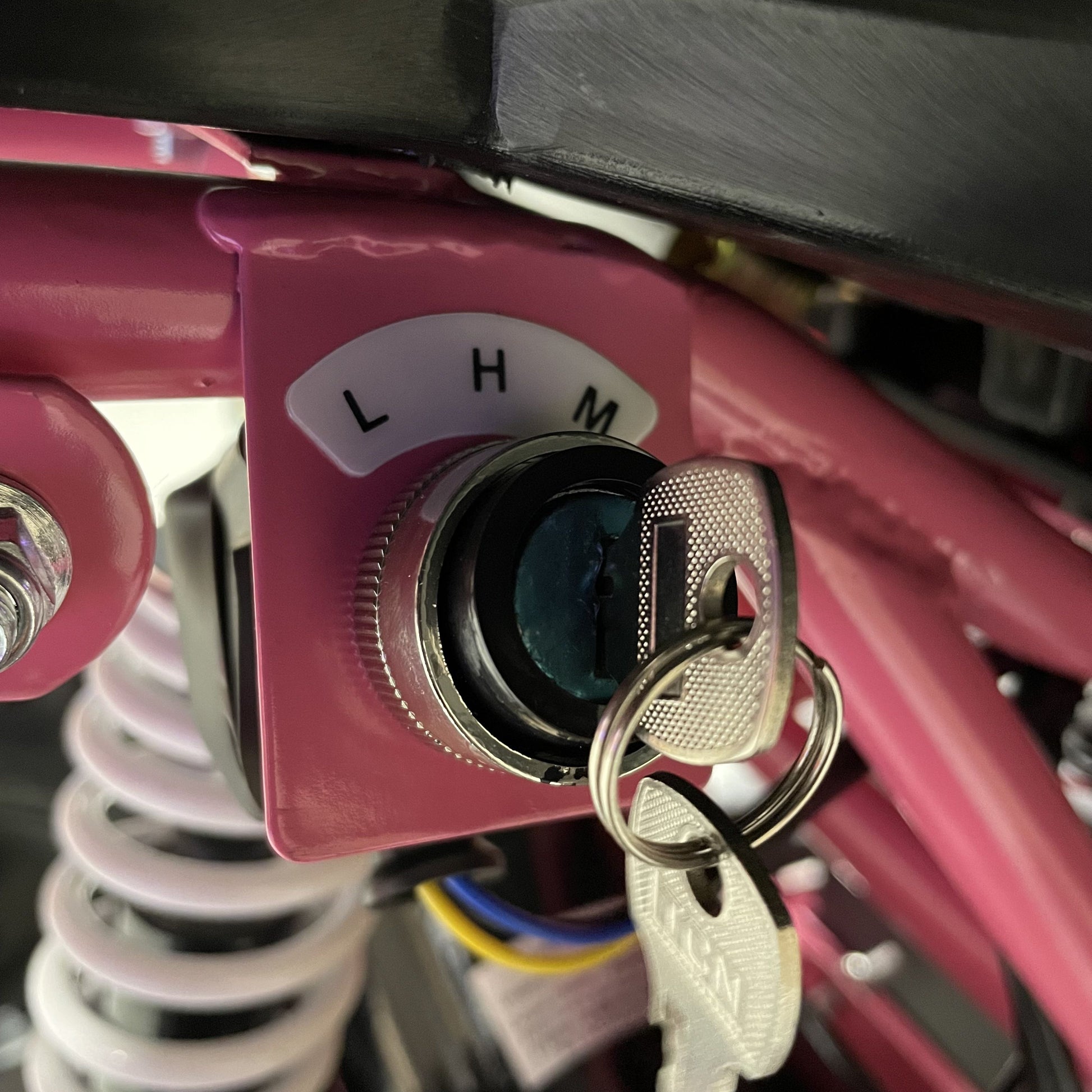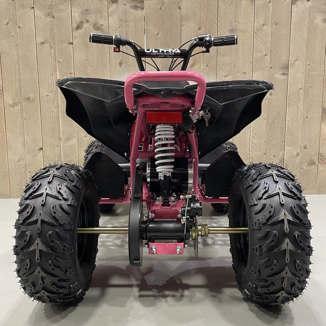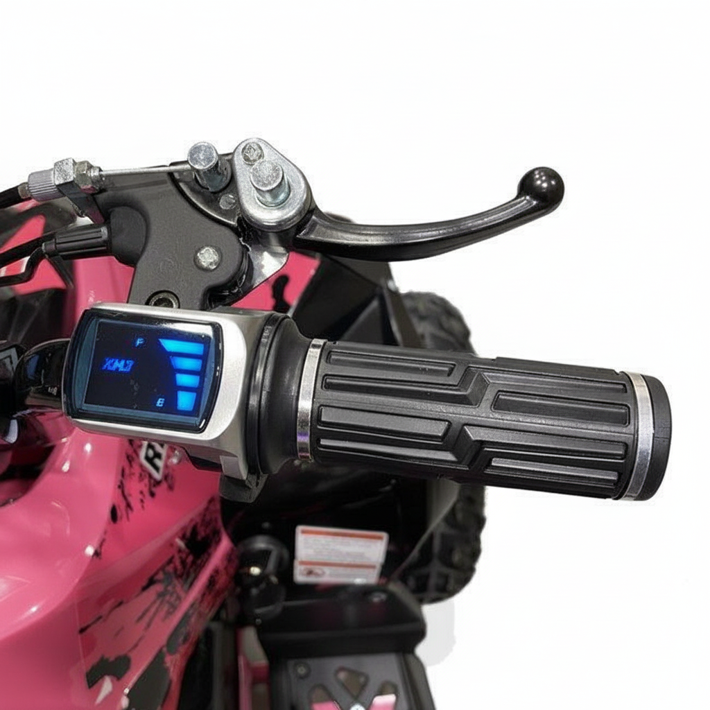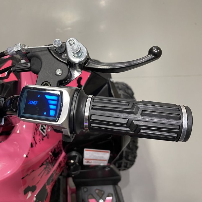 Dieses elektrische Kinderquad ist pink und sieht phänomenal aus. Die helle LED-Beleuchtung verstärkt den coolen Look zusätzlich. Ein weiterer Vorteil dieser Beleuchtung ist, dass das Quad immer gut sichtbar ist. Das Kinderquad fährt sowohl vorwärts als auch rückwärts und ist daher kinderleicht zu bedienen. Das bürstenlose 1000-Watt-Kinderquad verfügt über eine Neutralstellung. Die Höchstgeschwindigkeit beträgt 30 km/h. Mit dem abnehmbaren Schlüssel können Sie die Höchstgeschwindigkeit auf 5 km/h oder 15 km/h einstellen, sodass Sie als Eltern die Kontrolle behalten.