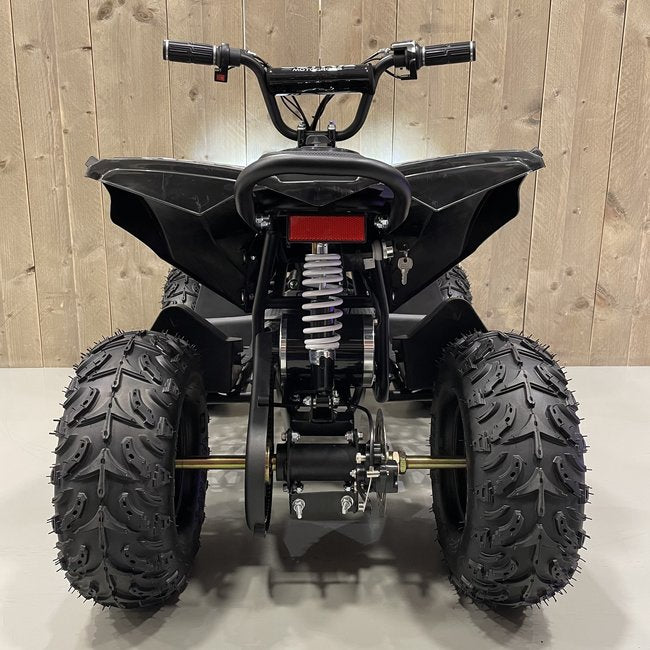 Dieses schwarze bürstenlose Elektro-Quad für Kinder mit 1000 Watt ist ein echtes „schwarzes Biest“. Die bürstenlosen Motoren sind für ihre extrem lange Lebensdauer und beispiellose Leistung bekannt. Sie bieten 40 bis 50 % mehr Leistung als Standardmotoren. Dies ist eines der leistungsstärksten Kinderquads in unserem Sortiment. Die hohe Leistung von 1000 Watt ermöglicht dem Modell eine noch höhere Geschwindigkeit. Auch steiniges und unwegsames Gelände ist diesem Modell nicht zu gewachsen. Die schwarze Lackierung sieht außerdem besonders cool aus. Ihr Kind wird damit einen bleibenden Eindruck hinterlassen. Sie möchten es etwas weniger leistungsstark? Dann wählen Sie die 800-Watt-Version , die in verschiedenen Farben erhältlich ist.