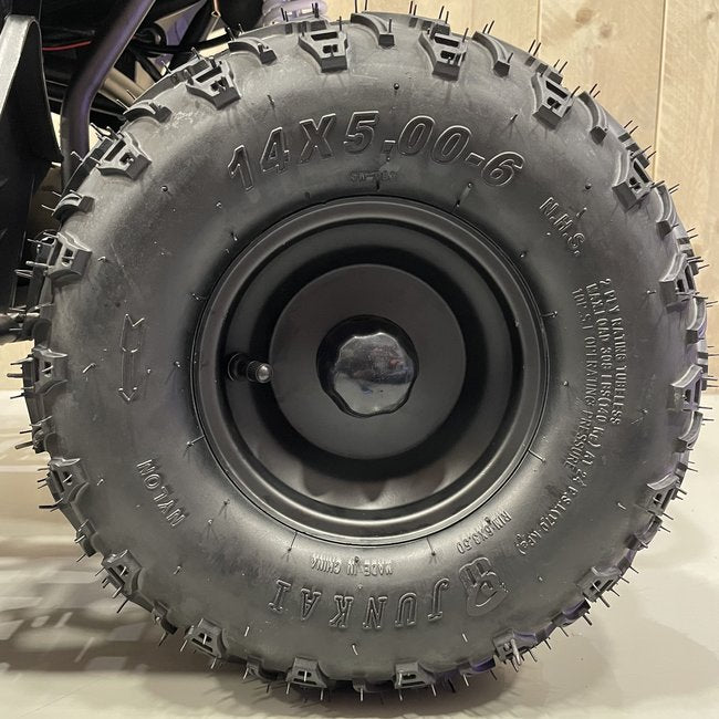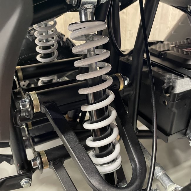 Dieses schwarze Kinderquad ist ein echtes Biest. Im Vergleich zum 800-W-Modell ist der Rahmen größer und schwerer. Kein Wunder also, dass dieses Kinderquad ein Gewicht von bis zu 90 kg tragen kann. Der robuste Rahmen ist mit einer robusten Federung ausgestattet, die viel aushält. Die hohe Leistung von 1000 Watt haben wir bereits erwähnt. Wussten Sie aber, dass dieses Modell auch über einen 48-V-Akku verfügt? Je höher die Akkuspannung, desto mehr Leistung hat ein Kinderquad. Kombiniert mit den Gummi-Luftreifen versteht man, warum dieses Modell jedes Gelände bewältigt.