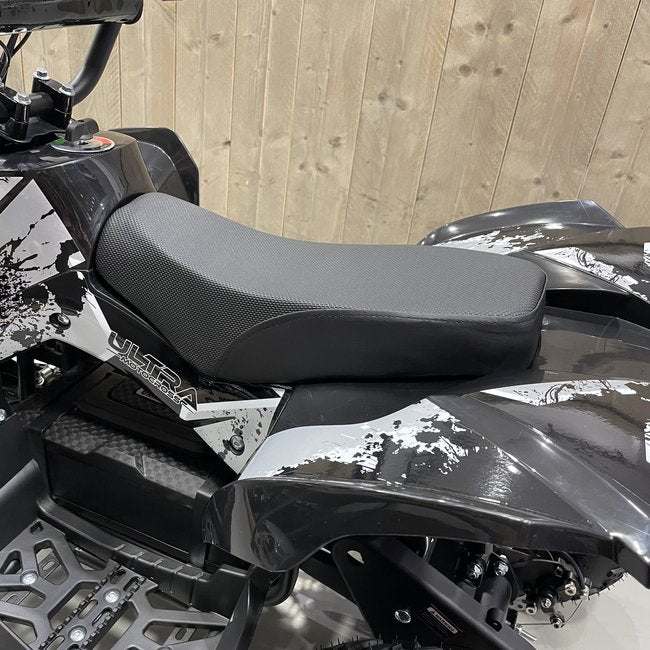 Dieses Modell ist für Kinder von drei bis zehn Jahren geeignet. Die Geschwindigkeit lässt sich mit einem Schlüssel begrenzen. Als Eltern können Sie dieses Kinderquad ganz nach Ihren Bedürfnissen konfigurieren. Es verfügt über eine Neutralstellung und das Modell kann sowohl vorwärts als auch rückwärts fahren. Zur Auswahl stehen drei Geschwindigkeiten: 5 km/h, 15 km/h und 30 km/h. Letztere ist die Höchstgeschwindigkeit, die dieses schwarze Elektro-Kinderquad erreicht. Dank des Ledersitzes sitzt Ihr Kind bequem auf diesem Quad. Bei diesem bürstenlosen 1000-W-Kinderquad wurde an alles gedacht.