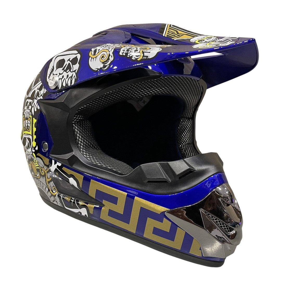 Kinder-Motocrosshelme in verschiedenen Farben und Größen erhältlich. Die zertifizierten Helme verfügen über ein gepolstertes, herausnehmbares, ultraweiches, schweißabsorbierendes und waschbares Innenfutter. Die nachhaltig designten Helme aus ABS-Kunststoff bieten dank der Sicherheitsschnalle mit einfacher Gurtverstellung eine perfekte Passform.