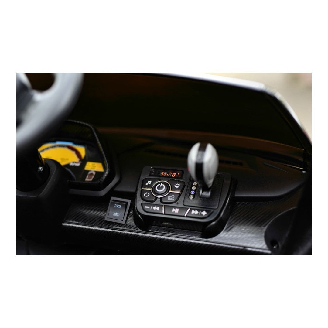 Dieser Lamborghini Veneno ist ein zweisitziges Kinderauto. So kann Ihr Kind mit jemandem zusammen fahren, egal ob Bruder, Schwester, Freund, Neffe oder Nichte. Einer fährt, der andere ist Beifahrer. Gemeinsames Spielen macht so viel Spaß wie nie zuvor. Dieses Modell verfügt über wunderschöne Schmetterlingstüren, LED-Leuchten vorne und hinten, bequeme und verstellbare Ledersitze sowie zwei Beckengurte. Dank des MP3-Players mit Bluetooth und AUX-Eingang macht das Fahren in diesem Lamborghini-Kinderauto noch mehr Spaß.