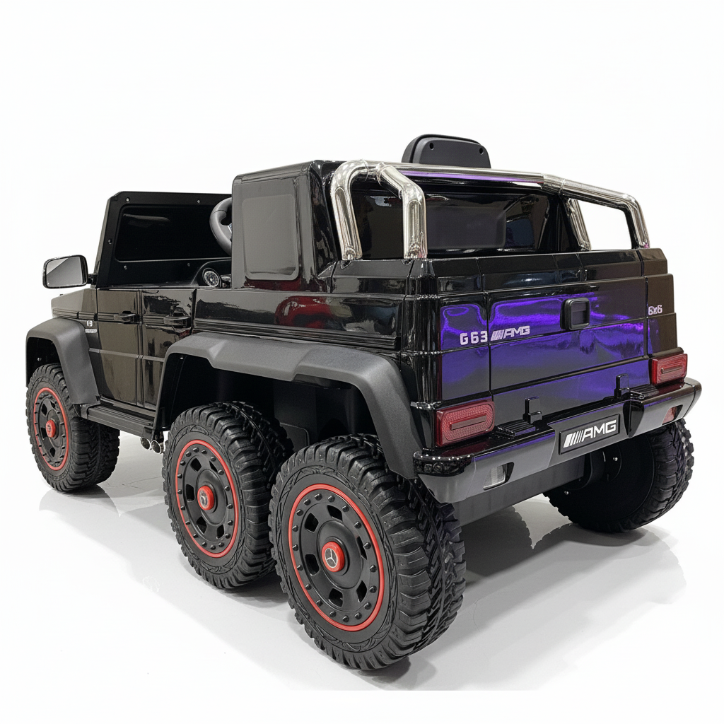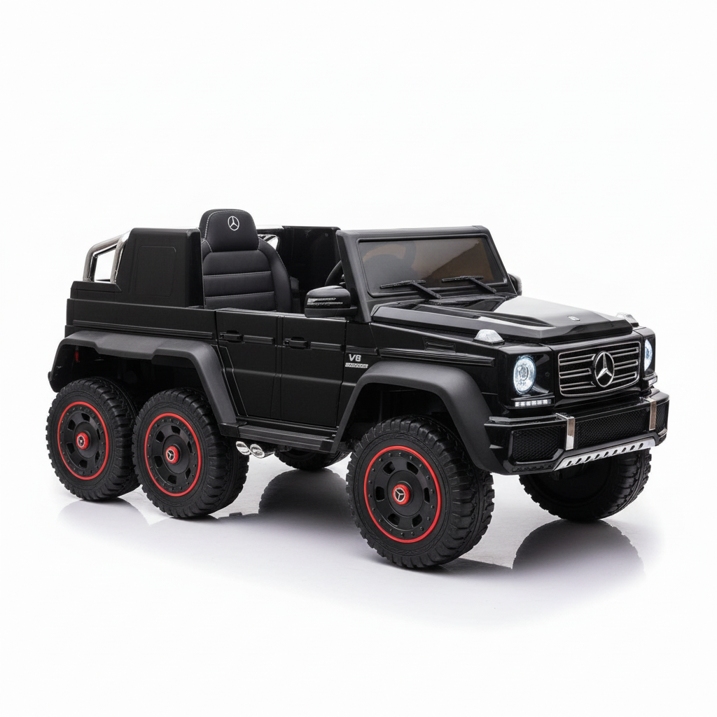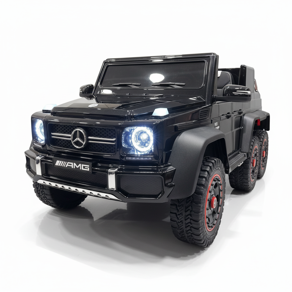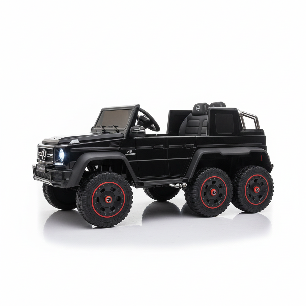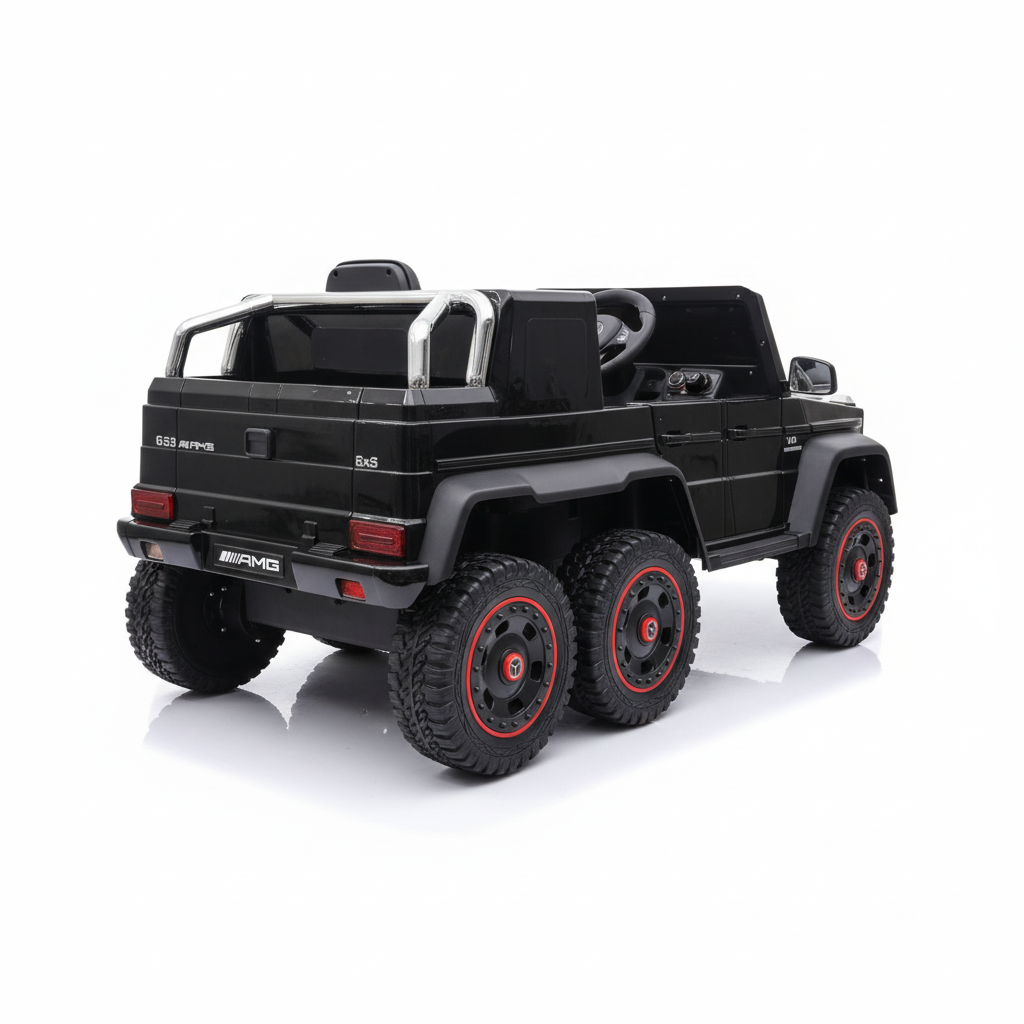 Mit seinen 6 Rädern ist dieses Mercedes G63 AMG Elektro-Kinderauto ein echter Hingucker. Sie fragen sich vielleicht: Inwieweit ist das ein echter Mercedes? Dieses Kinderauto ist offiziell zugelassen und somit ein echtes Mercedes AMG Kinderauto. Wenn Sie selbst einen Mercedes fahren, macht es noch mehr Spaß, Ihrem Kind einen Mercedes G63 6x6 zu schenken. Dann kann es im selben Auto mit Mama und Papa mitfahren. Das ist eine echte Fantasie für ein Kind. Aber dieses Mercedes Elektro-Kinderauto hat noch mehr Funktionen, die den Kauf lohnenswert machen.