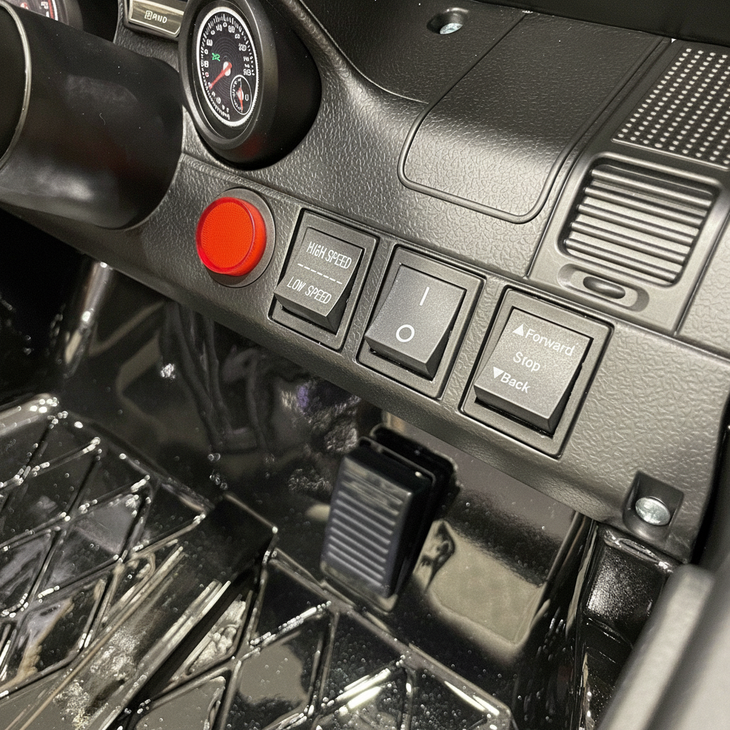Machen Sie Eindruck mit diesem metallic-schwarzen Mercedes G63 Kinderauto. Dieses Einsitzer-Modell ist mit Lichtern, Sanftanlauf und einer Hupe ausgestattet und somit immer sichtbar und hörbar. Ihr Kind wird sich über dieses Geschenk freuen. Kaufen Sie deshalb dieses metallic-schwarze G-Modell Elektro-Kinderauto von CarKiddo. Ein zusätzlicher Bonus: Sie können ein individuelles Nummernschild anfertigen lassen, zum Beispiel mit dem Namen Ihres Kindes. Bevorzugen Sie eine andere Version des G63? Dann schauen Sie hier: Mercedes G63 AMG