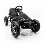 Der Fahrkomfort ist erstklassig. Die Pedale lassen sich leichtgängig bedienen, sodass beim Fahren kein Schwung verloren geht. Die Echtgummireifen tragen ebenfalls zum Fahrkomfort bei. Während der Fahrt können Sie mit dem Schalthebel zwischen Vorwärts- und Leerlauf wechseln. Eine Handbremse ermöglicht das Bremsen an beiden Hinterrädern. Das schlanke und ergonomische Design macht deutlich, warum dieses Mercedes-Gokart derzeit so beliebt ist.