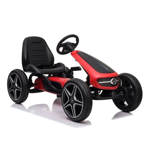 Dieses Mercedes Go-Kart ist jetzt bei CarKiddo erhältlich. Vielleicht hatten Sie als Kind Ihr eigenes Go-Kart. Viele von uns haben unzählige Abenteuer damit erlebt. Ob beim Spazierengehen auf der Straße oder beim Ausgehen mit Freunden – das Go-Kart war unser treuer Begleiter. Viele Jahre später hat sich daran wenig geändert. Man sieht Kinder immer noch regelmäßig Go-Kart fahren. Sie sind nach wie vor ein beliebtes Spielzeug. Jetzt kann auch Ihr eigenes Kind mit seinem eigenen Go-Kart jede Menge Spaß haben. Bestellen Sie jetzt dieses Mercedes Go-Kart mit Gummireifen in Schwarz von CarKiddo.