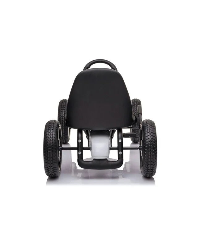 Der Fahrkomfort ist erstklassig. Die Pedale lassen sich leichtgängig bedienen, sodass beim Fahren kein Schwung verloren geht. Die Echtgummireifen tragen ebenfalls zum Fahrkomfort bei. Während der Fahrt können Sie mit dem Schalthebel zwischen Vorwärts- und Leerlauf wechseln. Eine Handbremse ermöglicht das Bremsen an beiden Hinterrädern. Das schlanke und ergonomische Design macht deutlich, warum dieses Mercedes-Gokart derzeit so beliebt ist.